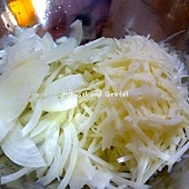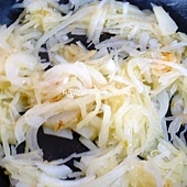 2.將洋蔥用小火炒至軟化取出放置容器中備用。