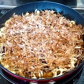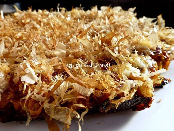 7.將擠上美奶滋後,在鋪上柴魚片,日式大阪燒完成。