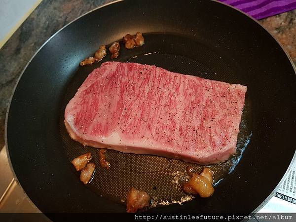 我覺得你已經煎得不錯! 但通常我不會再另外加入牛油來煎 和牛本身油脂已經滿..出來