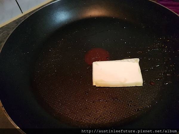 奶油融化,跟鍋中剛剛殘餘的一點牛油混和,奶油加熱的香味撲鼻