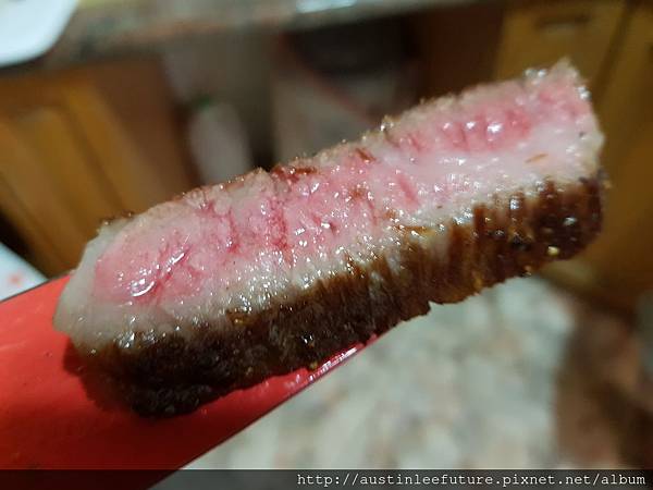 正中間切面,是很漂亮的粉紅色,大約是7~8分熟
