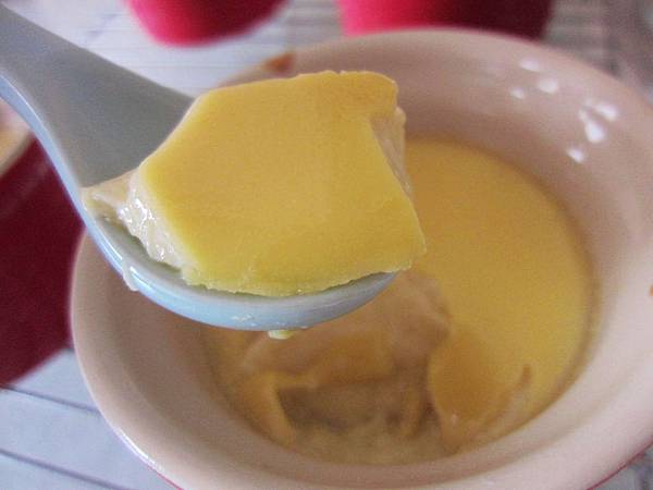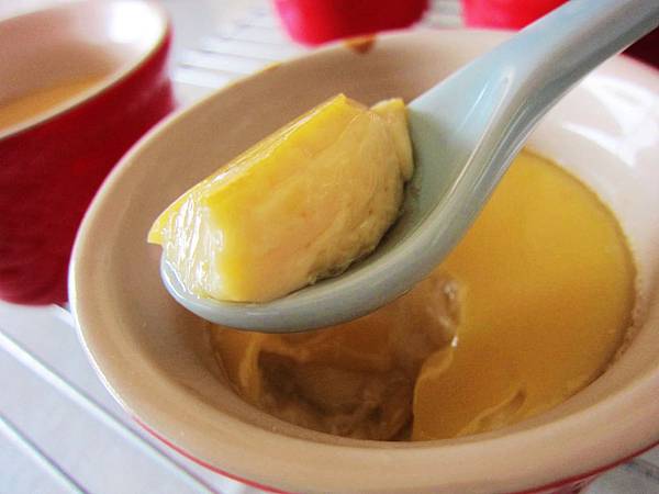 因為烤模底下已經放了焦糖液,又顧慮到孩子們不可以玩火,所以上方就不需要再灑砂糖烤成脆皮,當然若是自己要吃的也可以省掉一開始的糖漿步驟,改成最後灑上砂糖再用噴火槍烤成酥脆甜蜜的脆皮囉~