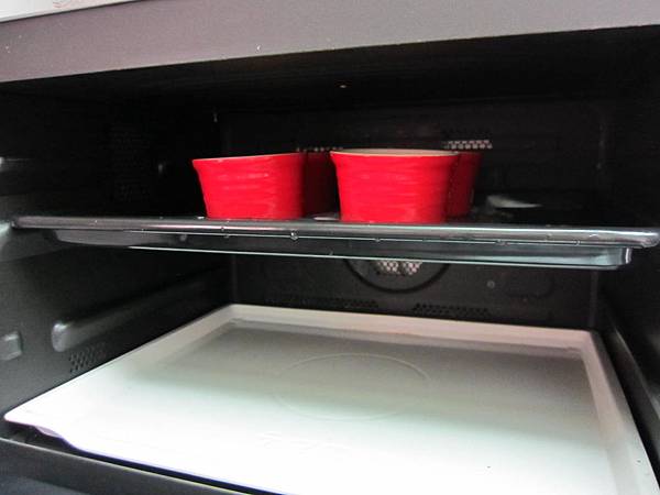 一般烤箱到這個步驟就要隔水加熱,而且還要預熱...不是油電被漲得哇哇叫嗎?用小H做烤布丁不需要預熱,也算一種節能減碳吧!