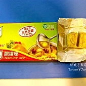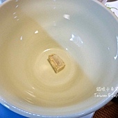 1.先將雞湯塊切成一半,放入碗中以熱水沖開備用。