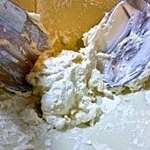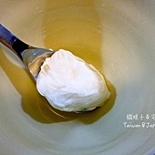 5.將一湯匙的酸奶油及低筋麵粉均勻攪拌。