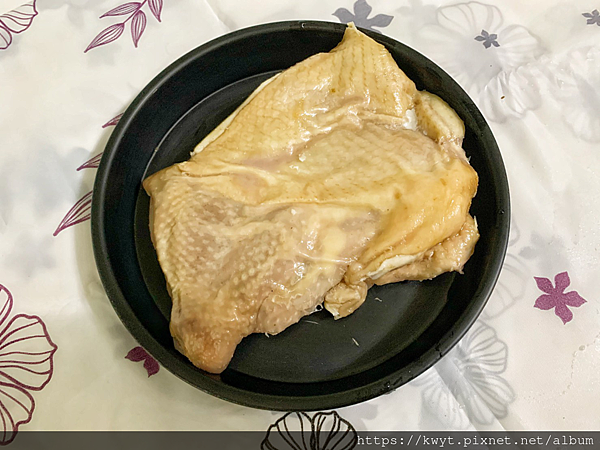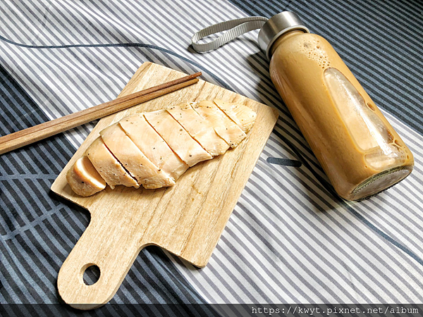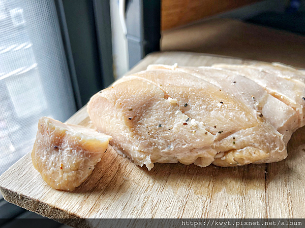 假日早晨,將一塊舒肥嫩雞胸取出室溫退冰,切塊開吃!