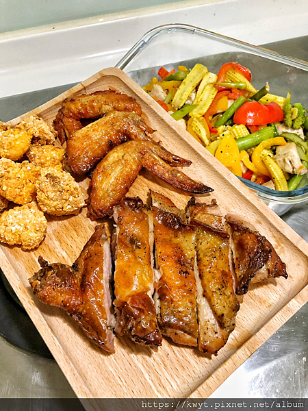一併購入的紐奧良燒烤二節翅 1 kg、原味雞米花 1kg、雞肉香腸 6 入,也可一同烹調切製放入健康便當裡增添菜色的豐富度;亦可製作創意料理,在早餐時、點心時刻、午餐便當、下午茶、晚餐、宵夜皆可派上用場。