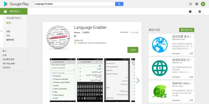 感謝hank2006推薦在google play搜尋安裝Language Enabler