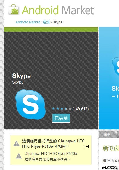 這個應用程式與您的 Chungwa HTC HTC Flyer P510e 不相容。