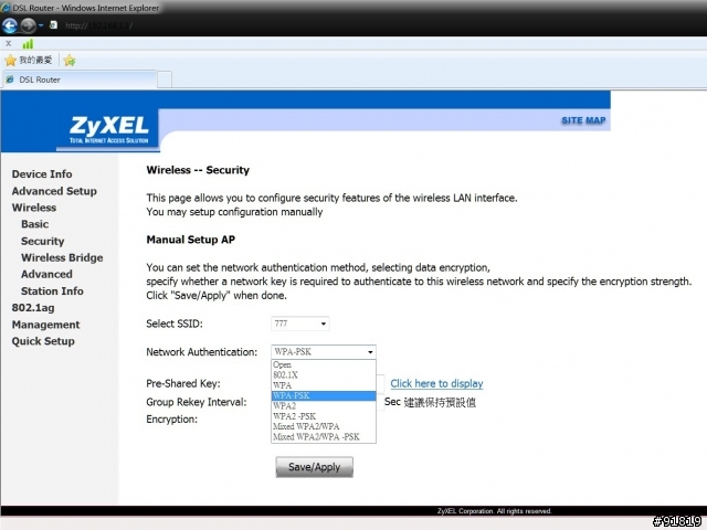 接著, 到wireless LAN 將安全模式改成WPA-PSK, 密碼設你等一下要輸入的