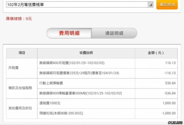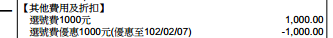 網購時有預付1200元,然後有送1000選號費