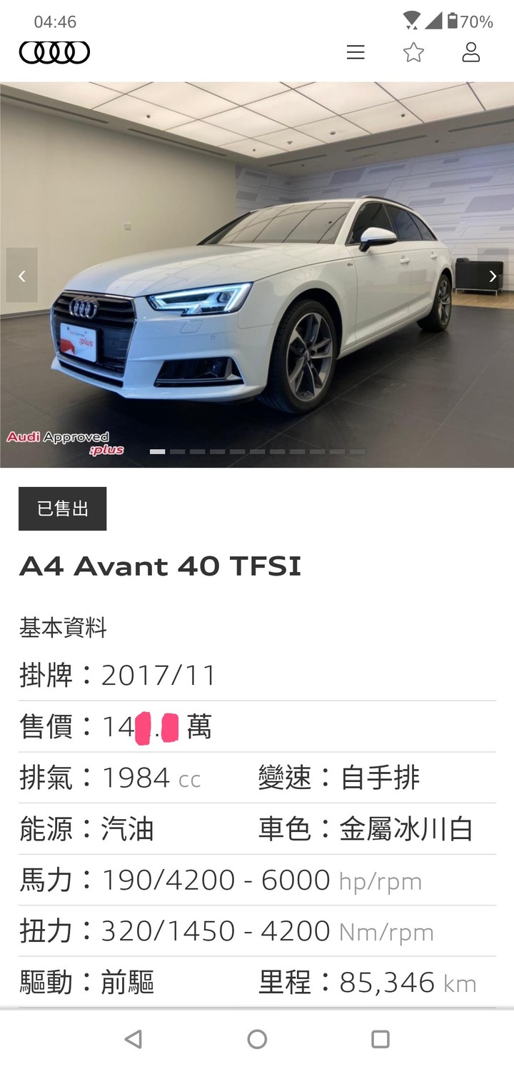Audi 是棒的車子, 我2015年底購買小改款的A6 avant, 擁有了4年, 車子一點問題與異音都沒有!後來換了其他德國某牌的車, 開了半年一肚子大便, 小問題雜音一堆, 速速賠錢脫手!!去年年中買了以前信誓旦旦絕不看一眼的L牌, 只因為某牌小問題一堆被氣到了, 且小改a4 avant尚未上市, Audi的車很有氣質很美, 一直到現在都還念念不忘以前的Audi~~~