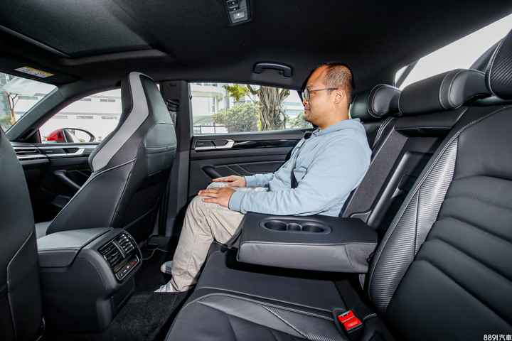 Arteon的後座明顯比V60寬敞,成年男生翹腳坐都沒問題,空間很舒服,