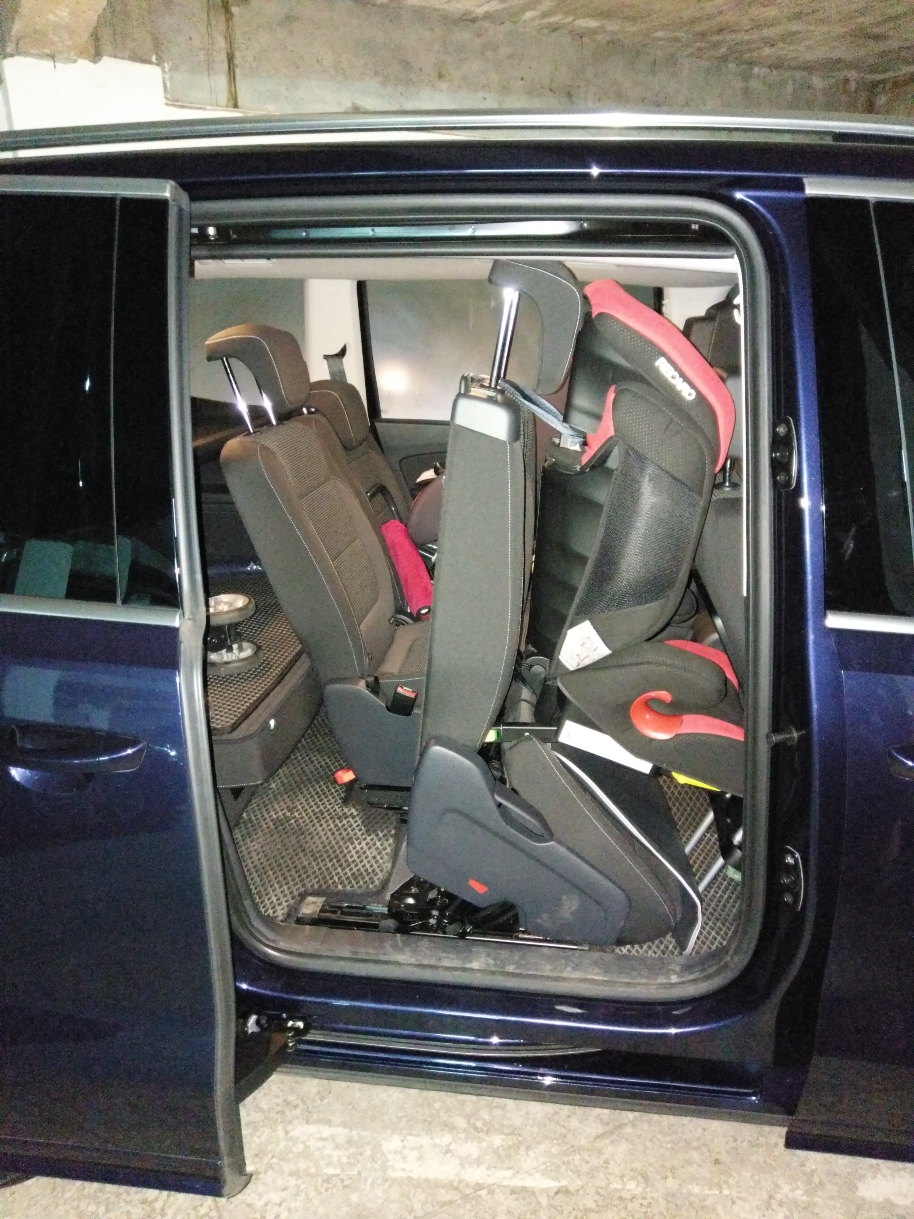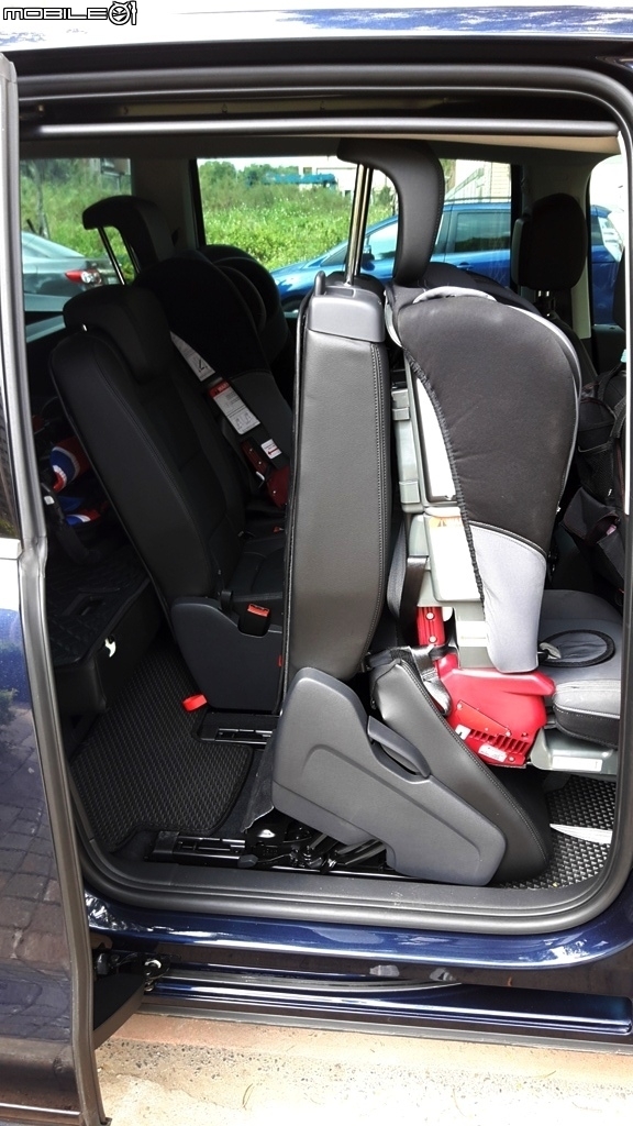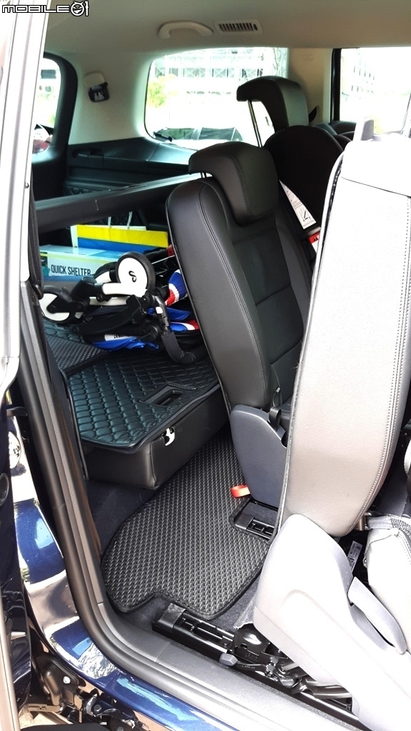 我sharan第二排左右2張用ISOFIX安裝安全座椅,只要把駕駛或副駕座椅往前移動,就可以很輕鬆的讓第三排進出囉!!