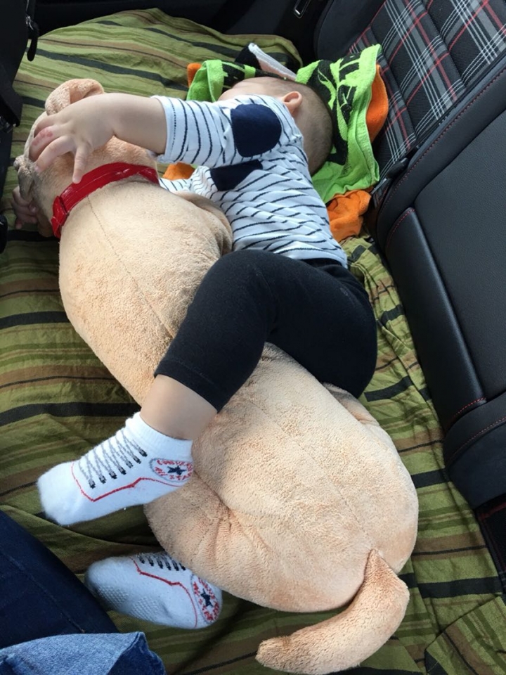 誰知道在安全座椅還沒上去時,小犬就昏迷了,為了安全座椅還把他整個吵醒,搞得沒完沒了。
