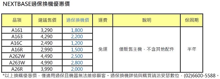 我使用a163大約兩年兩個月。大約一個月前,頻繁當機,只會出現nextbase logo 但不再出現錄影畫面。所以昨天使使用官網教學的方式更新韌體,無奈更新完還是呈現一樣的畫面。經詢問臉書小編,只得到請我聯絡客服的回應。電話中,客服小姐表示他很久沒有收到臉書訊息(因為不是他負責的業務),他也不清楚這個討論串慢慢有人在討論使用兩年左右的機器出現問題(因為一樣不是他負責的業務範疇),當下也不知道能否維修或是檢修需要多久。行車紀錄器是個平常沒用但是也不知道何時會需要它的存在,說真的除了各項功能,更需要的是穩定性。今年的確已過保固期,如果公司很勇敢地說「因為已經過保了,所以請你認了」那真的還好解決,我可以直接購入新機。後續看看最後如何處理再上來回報了,後續要購買機器的人可以多比較參考。
