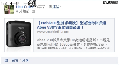 【你覺得Abee V30行車記錄器是最讚聖誕禮物的原因?】高清晰畫質的行車紀錄器可以讓我不管在天黑,雨天都可以放心的路上行駛,而且120度超廣角 不會遺漏事故任何重要角落+體積超小 不會影響駕駛的視線&緊急錄影 將事故影像完整保留,實在讓人挑不出任何缺點.