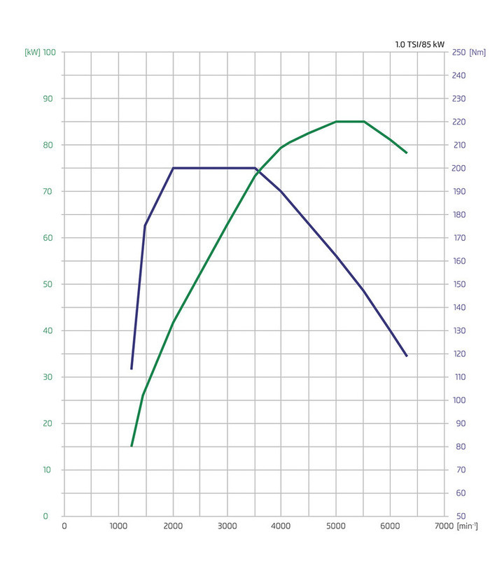 TSI 1.0 的[扭力高原區]自2000 RPM開始.