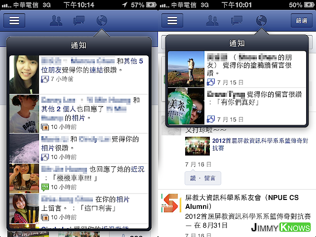 | 點選好友,FB是個人的一些朋友邀請,而小幫手則顯示哪些使用者按過讚 |