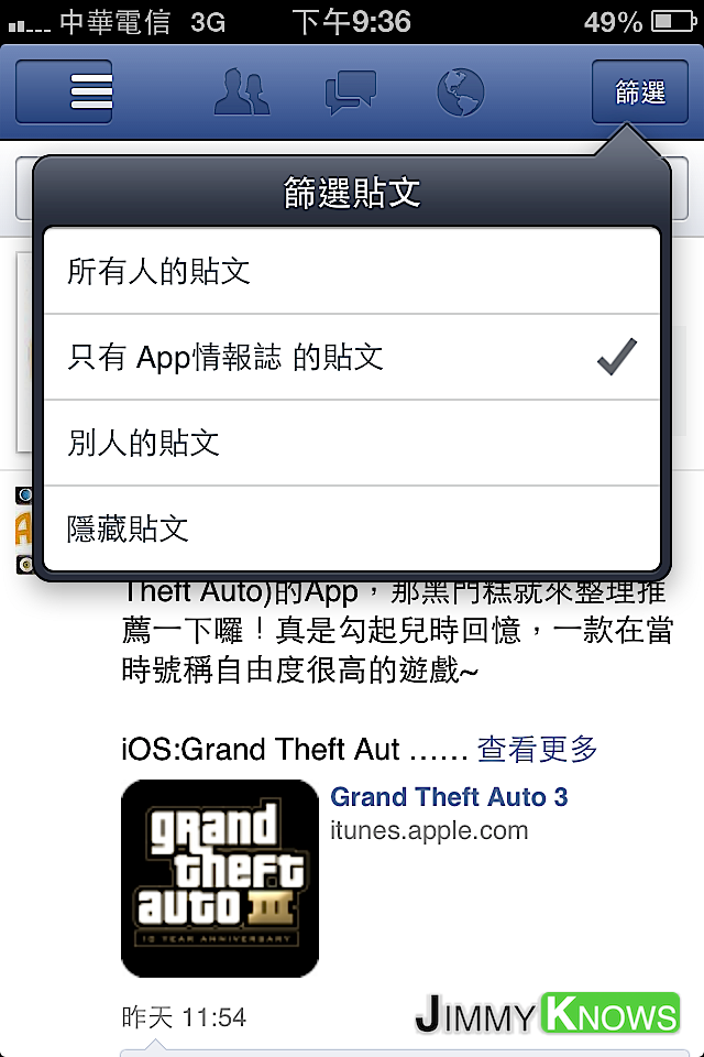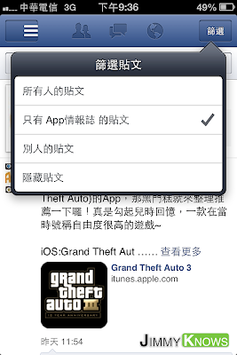 | 小幫手右上方的「篩選」按鈕是用來顯示貼文選項的 |