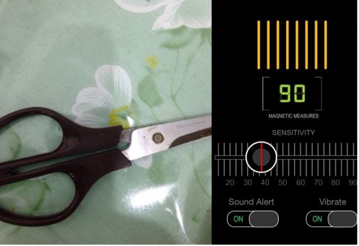 這不是假的應用app, 而是真實的金屬探測器, 可探測磁性金屬(如鋼、鐵、金、純銀等)。剛剛測試, 接近剪刀數據就會到達90, 而且嗶嗶叫, 這是怎麼做到的啊!!!METAL DETECTOR S19 (REAL METAL DETECTOR) (美)$1.99 -> Free金屬探測器一離開剪刀, 數據就降到37, 真神奇...