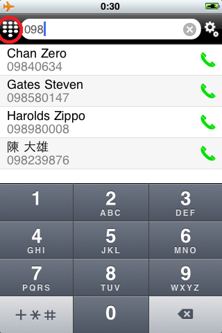 mobi2box wrote:mobiDialer...(恕刪) >////<好幸運!不錯用捏!簡單又快速,剛剛試玩分享一下心得介面簡潔流暢,採用ip4原來的輸入模式,英文 數字 手寫 中文都沒問題 呵呵進入聯絡人簡介之後,號碼撥號-成功!email成功,地址導航-成功(ps我有裝導航王)導航地標紅點會顯示聯絡人姓名->耶!我在朝紅點按下去又回到聯絡人簡介,畫面有點不同變成了可以設定為終點或起點,傳送訊息,與加入書籤(恩恩~摸下巴~呵呵~對我來說很好用拉 呵呵)紅色-切換姓名/號碼查詢藍色與綠色-(設定可以改姓氏/名子的前後順序)名子查詢 EX 小明 (對我很合適...因為通常記得名子忘了姓啥)姓氏查詢 EX 李 (才打第一個發音就已經出現了 很快)紅色-已經切換成號碼查詢!(本來很開心的想說可以區分網內還是網外,but QQ 我忘記大家都很愛NP)紅色-更新聯絡人資料,需要來這邊同步一下^^快樂使用中!mobi2box wrote:mobiDialer...(恕刪)