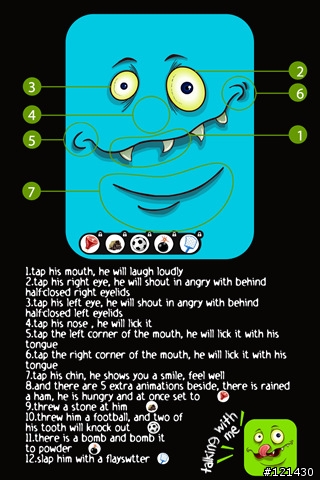 Talking Can$1.99>>FREE (17.7M)如果家裡的小小寶被喜歡海綿寶寶那一類風格的卡通人物的話,可以玩玩這個,點他一些地方(如下圖圈起處)會出特定聲音,你發出的聲音,他也會接著用卡通音播放出來.PS.他也有海綿寶寶那個"黃" ,還有內建購買功能記得關掉,以免小朋友誤按唷.