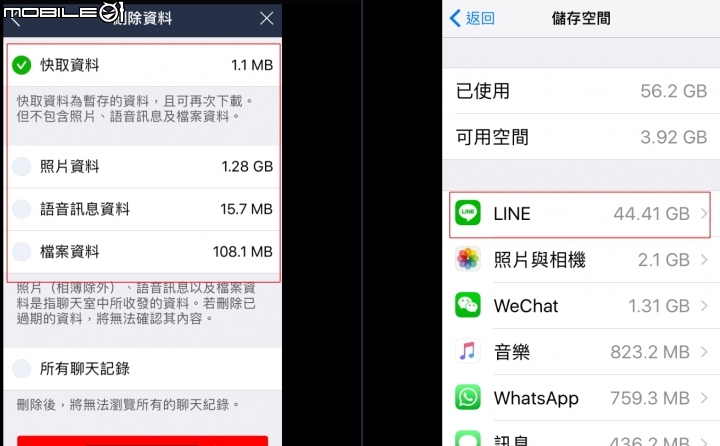 snhui wrote:但是程式裡面沒有清除line的暫存檔案選項...?? Line右下角三個點=>右上角齒輪設定=>聊天。通話=>拉到最下面=>刪除資料沒有這個選項的話,請確認你的iOS版本跟Line版本是否為最新