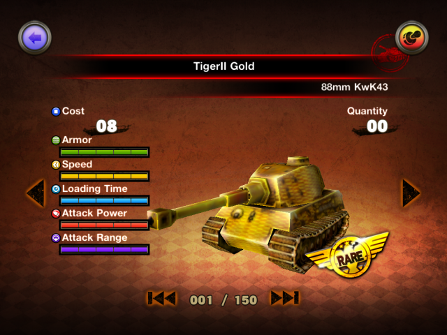 遊戲總共有150種坦克可以蒐集,蒐集方法是轉轉蛋(每24小時可以免費抽一次 或是選擇付費抽轉蛋)