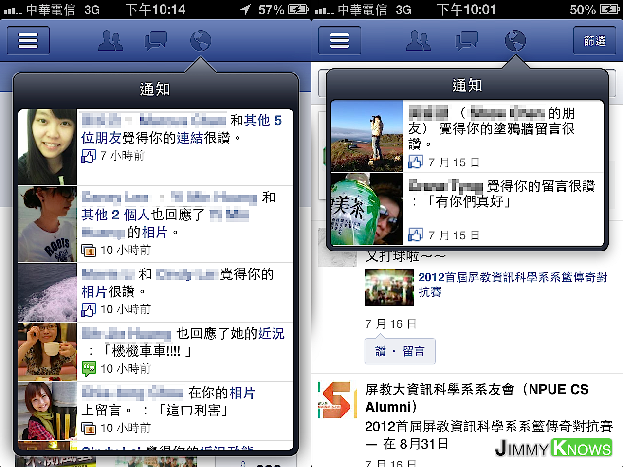 | 點選好友,FB是個人的一些朋友邀請,而小幫手則顯示哪些使用者按過讚 |