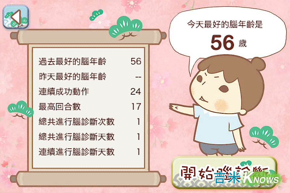 | 一進主畫面,就可以看到可愛的主人翁-接接,主要分為遊戲及每日腦診斷。 |