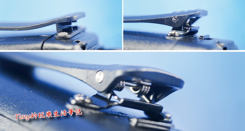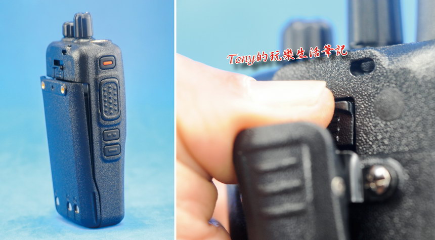 ▲最讓我受不了的就是過去買的無線電對講機的背夾,除了日製機之外,其它的都很糟糕,不是夾不緊就是太容易斷了。而仔細看過【MOTOROLA MAG ONE EVX-C31 數位可攜式對講機】的背夾,採用的是高彈力的彈簧,夾的很緊很牢,這點真是得說大廠就是對細節用心。