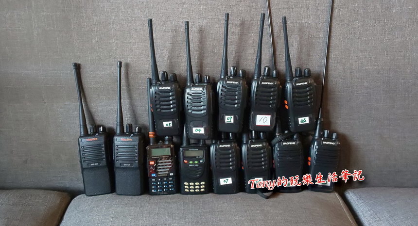 ▲手中之前一些日製機都已經出脫了,而台製的部份也都是VHF頻段,只好拿出同樣是UHF頻段的寶鋒BF-888S跟粵鴻YH-A8雙頻機來跟【MOTOROLA MAG ONE EVX-C31 數位可攜式對講機】比試一下通話音質。目前就我所知的是寶鋒BF-888S跟粵鴻YH-A8雙頻機這兩款機型在台灣賣的很多,就算不是同廠牌,也都是同一片公版生產出來的,只是掛個不同的品牌型號而已。