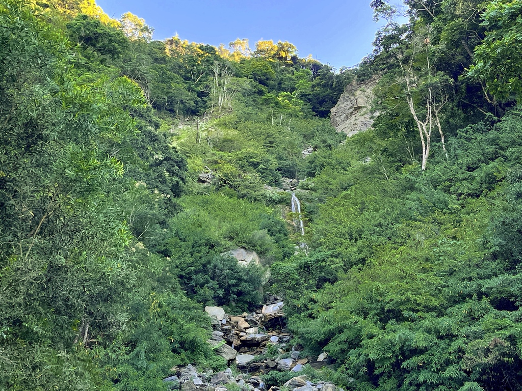 ▲此行乃趁著五個家庭出遊的晨間空檔而來,好友用11號公車,我則踩著2輪。知本林道水量豐沛,預估待我們下山時,遊客也會聚集了。