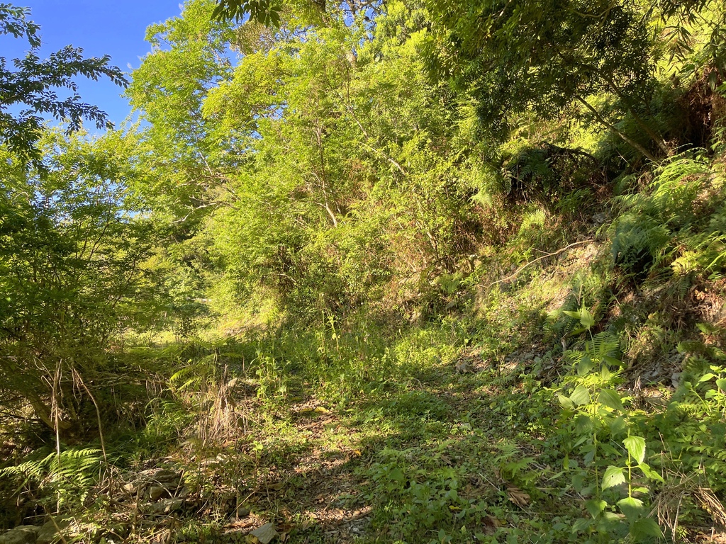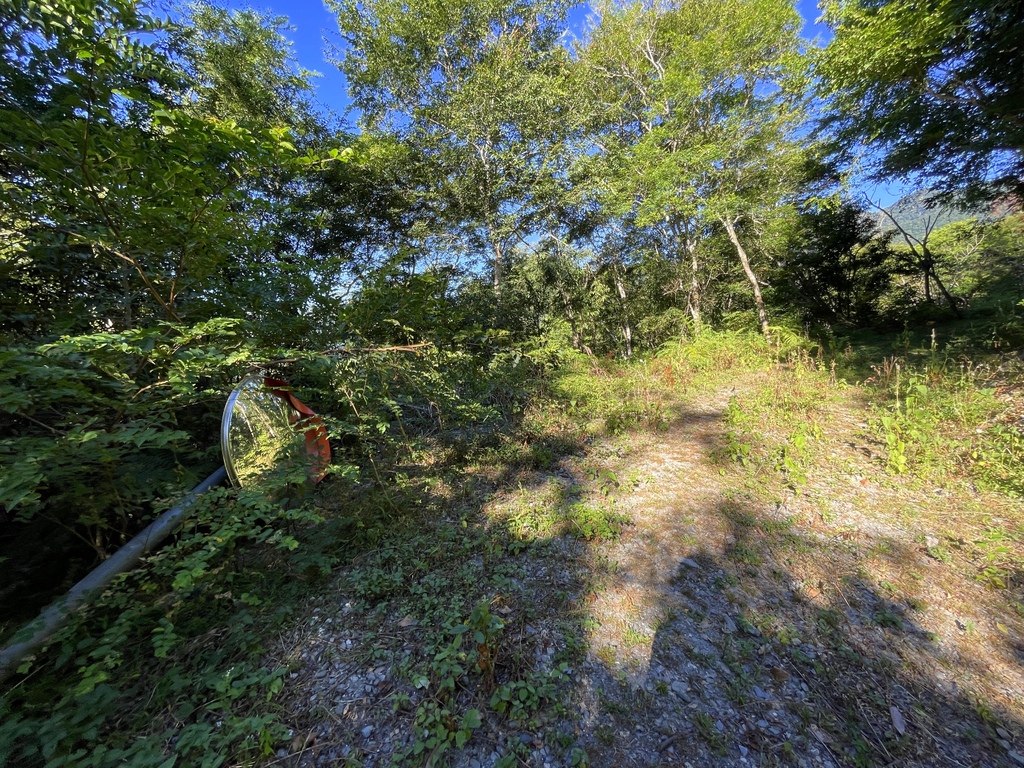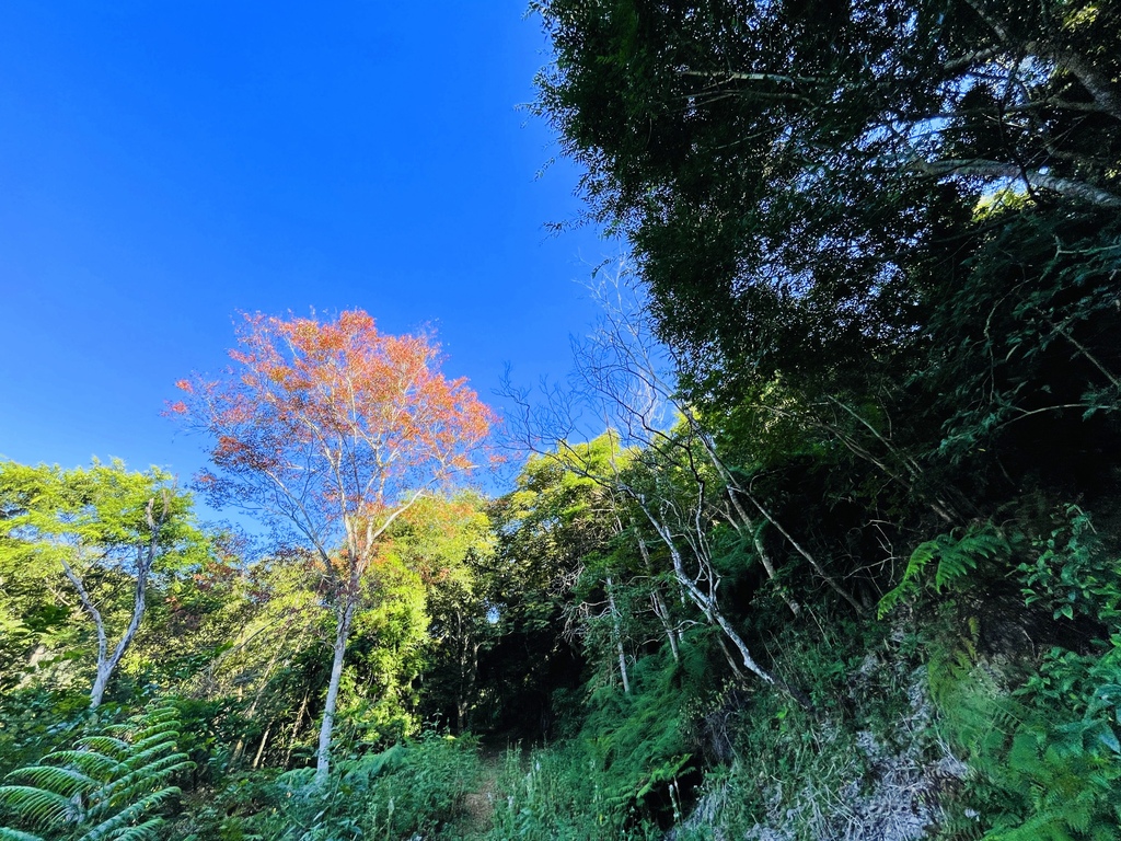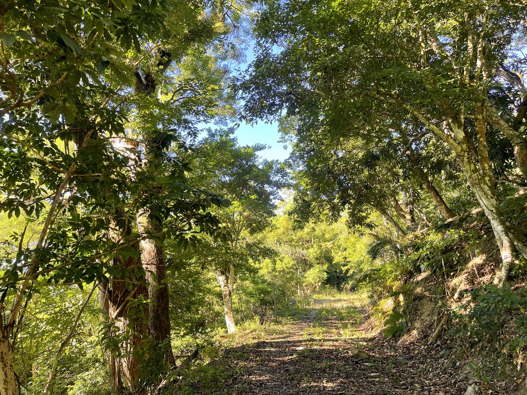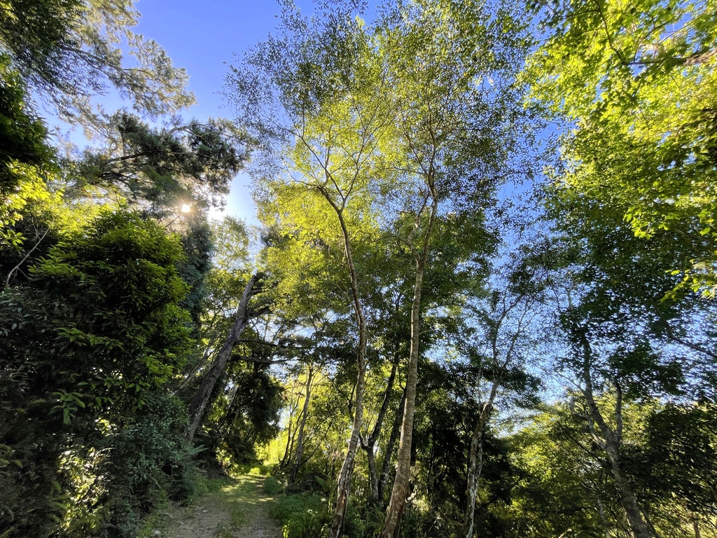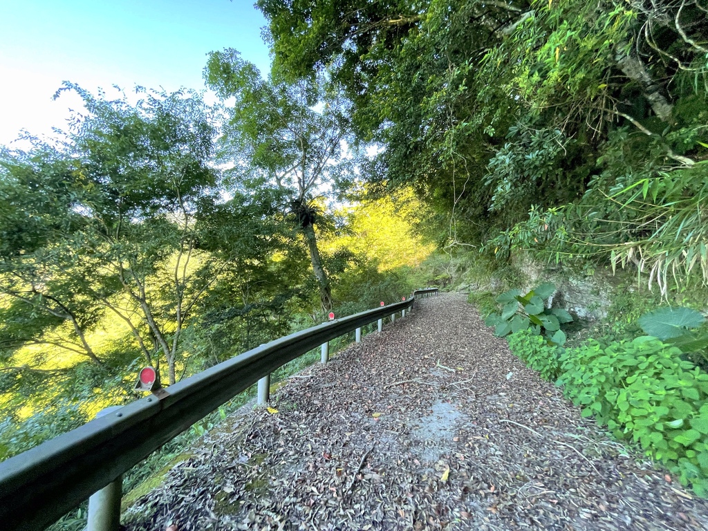 ▲過了崩壁印入眼簾的即是年久未有人煙的林道,樹木和雜草宣告著林道即將被大自然回收。