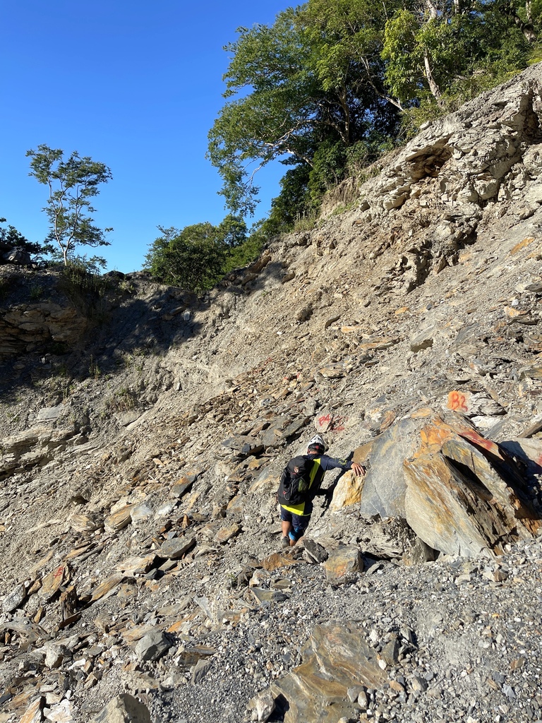 ▲6.7K的大崩壁可以說是膽識的試驗場,我個人認為踩點明確(有可能是山友通往大小鬼湖所致,或者是林務局工作人員的腳步),仔細慢行即可,好友沒把握,只能放棄,我只好一人繼續踏上探訪白榕的路。