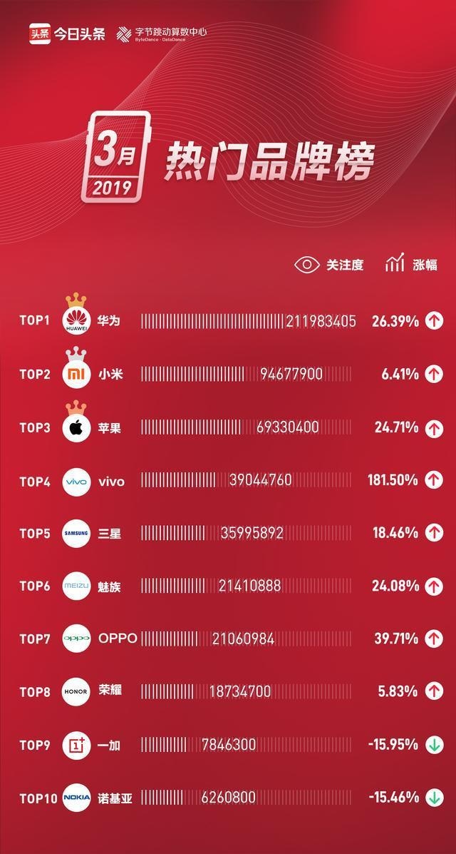 這樣的傳播結構,在我看來是不正常的。再看榜上第六,是小米9diss到死的華為Mate 20,這款手機發布已經超過4個月,熱度依舊不減,與之相匹配的是全球銷量破千萬台的記錄。兩相比較之下,小米9黯然失色。