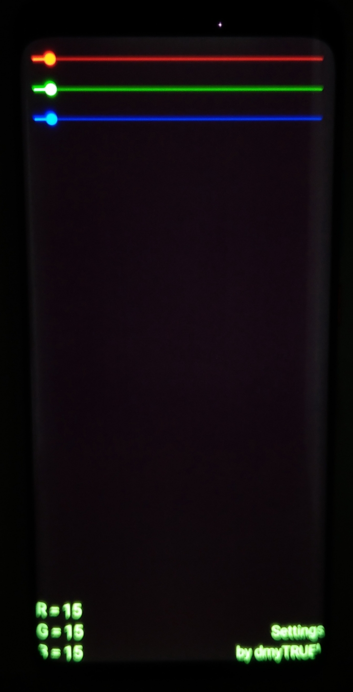 請問大家測試的時候是怎樣的環境下是要全部都沒光線之下嗎?像是在紙箱裡還是在有稍微背景光線的暗室裡?我的螢幕是LG-01-18-10-43這是全暗的狀況這是有稍微背景光其他的設定就是參考網友的設定,RBG都是15 亮度最暗這樣應該沒綠光吧還是我的測試方法不對想去貼保護貼了 都不太敢用