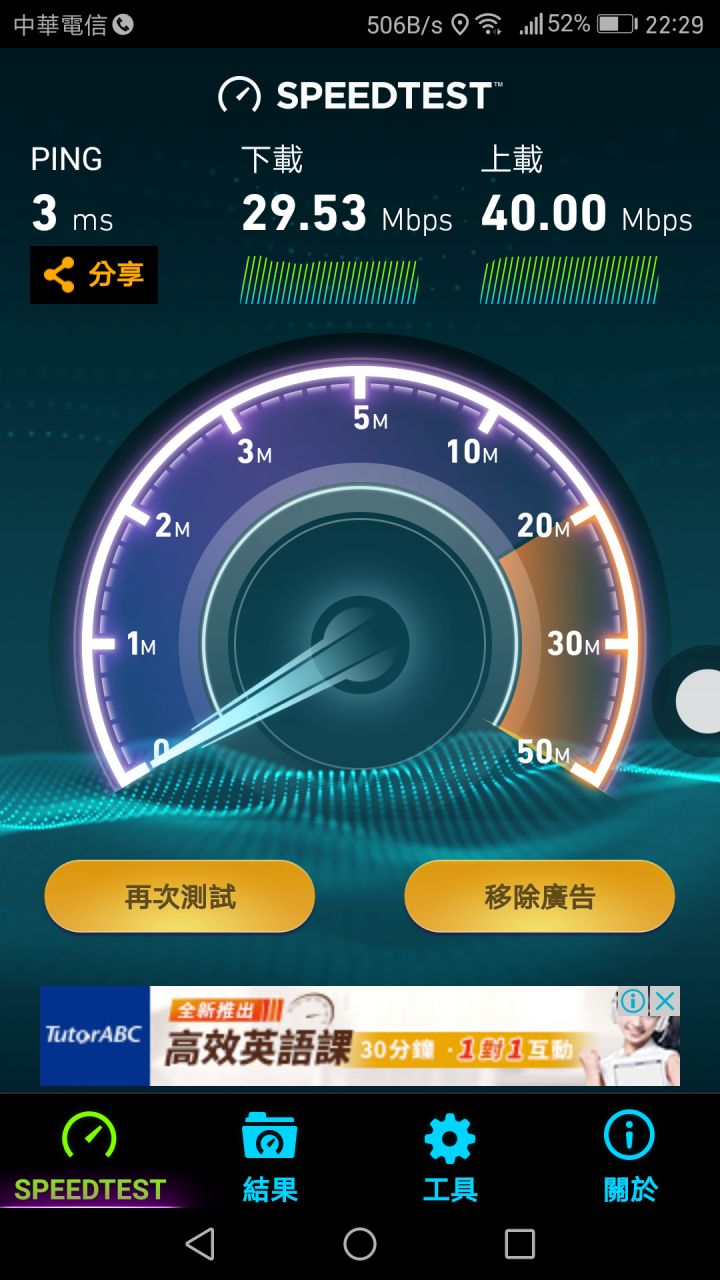 而且在沒有遮蔽物的前提下(門板除外),45坪空間下AC的5G WIFI還是能有2~3格收訊