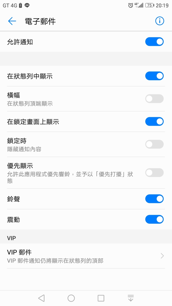 設定》通知與狀態列》通知管理