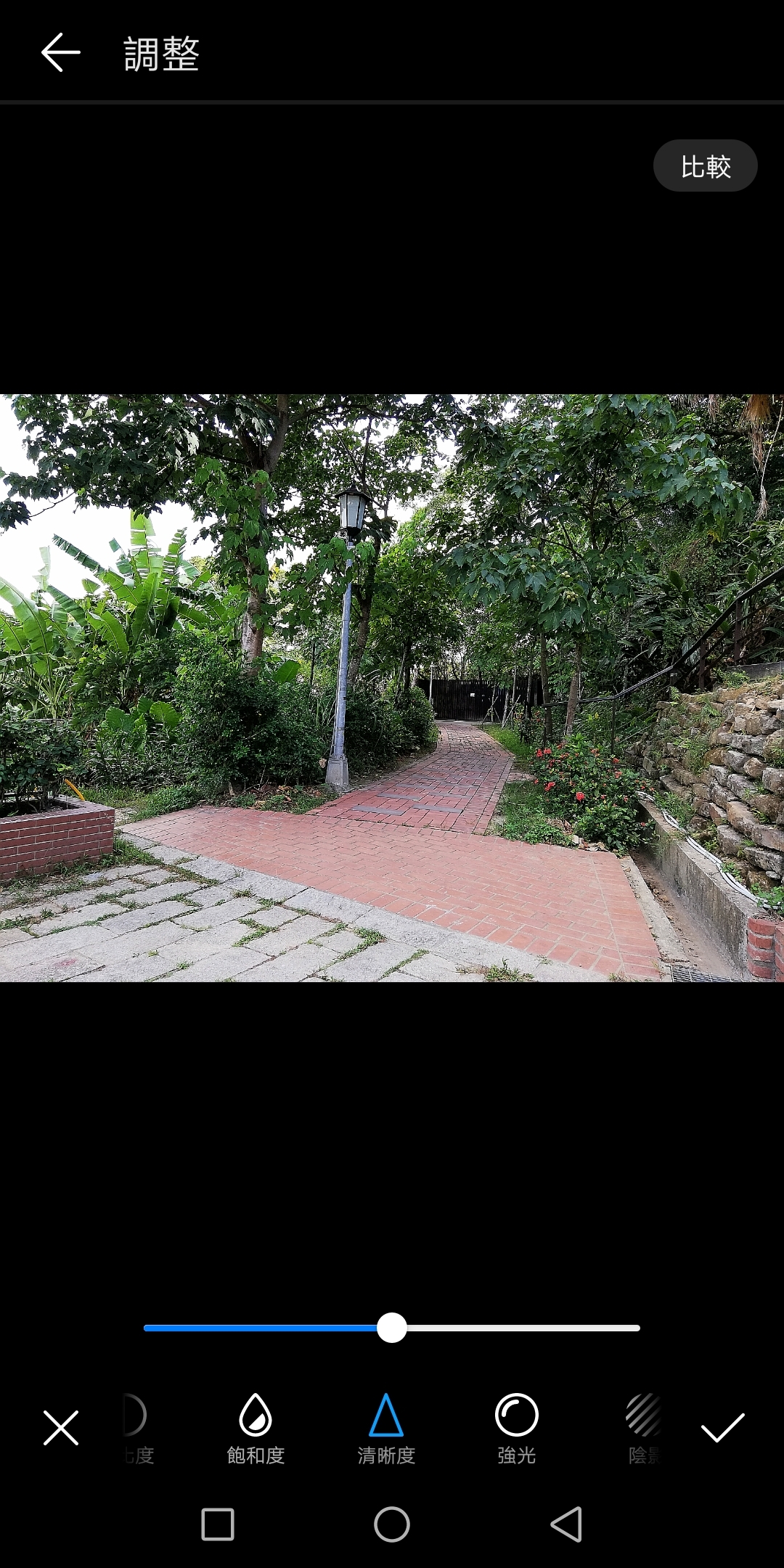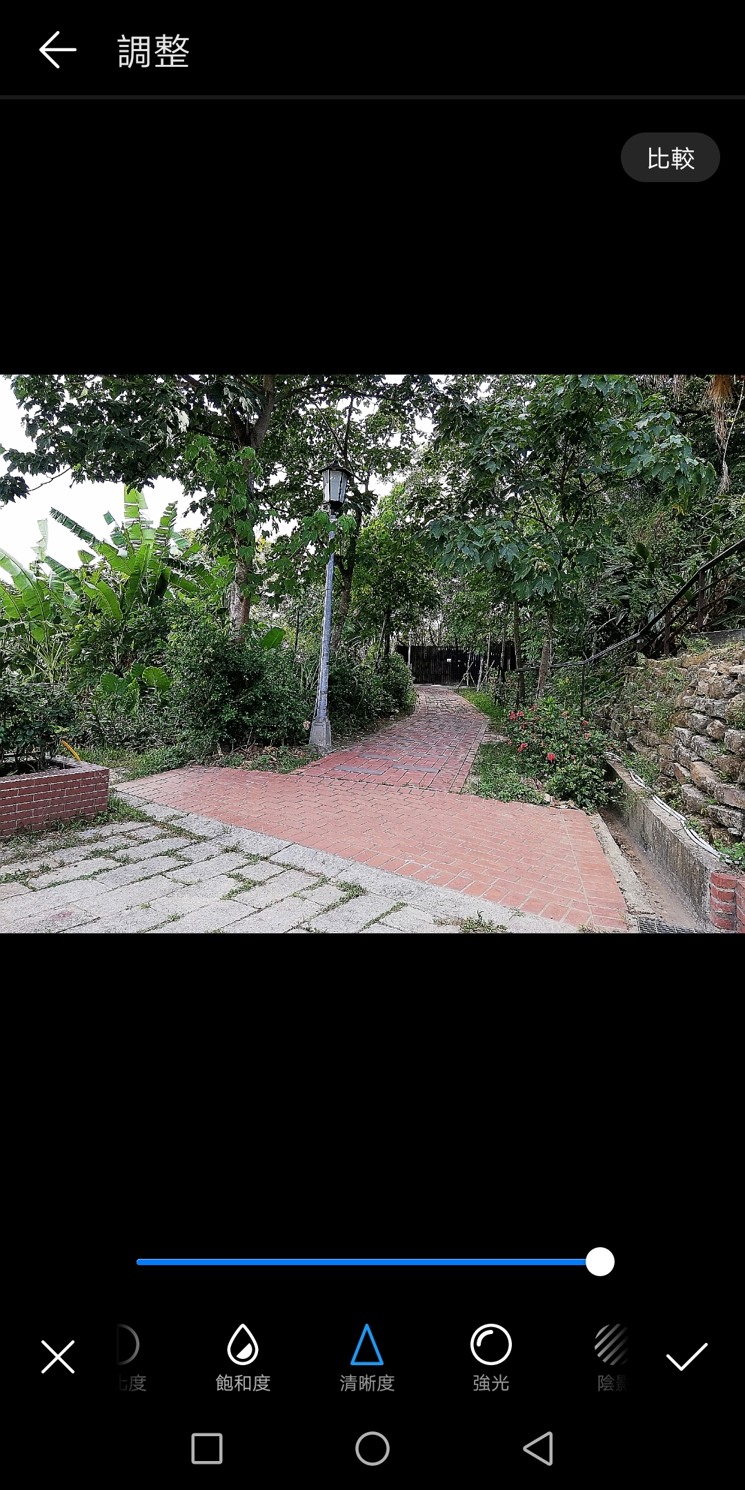 (以這種戶外照片而言,我個人感覺稍微拉高清晰度,照片就稍微變糟).