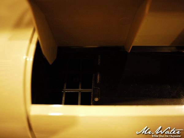 在出風口處,原本是防止小孩伸手誤觸的格柵欄設計,如今變成我臨時3C產品除濕的擺放處。