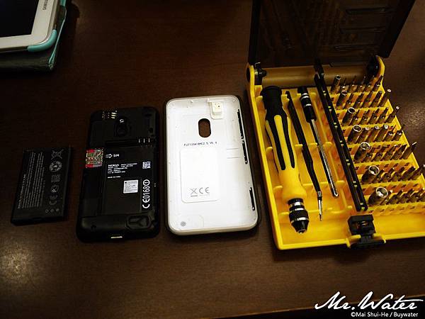 ▼第一步驟:電池直接拔掉,並將所有可以拆下的SIM卡、記憶卡、外殼背蓋、果凍套、保護套等,都拆下擦乾淨。