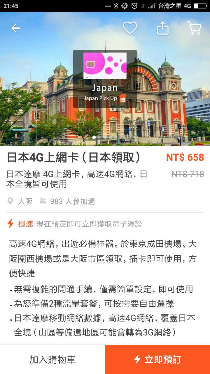 買台哥大日本漫遊預付卡就好了,還比較便宜。