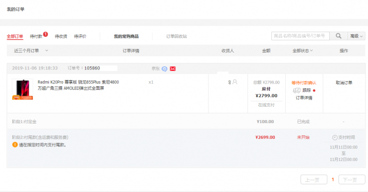 下午才去小米之家看完9T PRO實機,晚上回到家一刷京東網頁尊享版8G/512G竟有貨剩一支?火速立馬下預訂線刷RMB100,喔耶~成功!!想請問有買過京東的大大們,300元優惠劵是否是在11/11結尾款時再使用?
