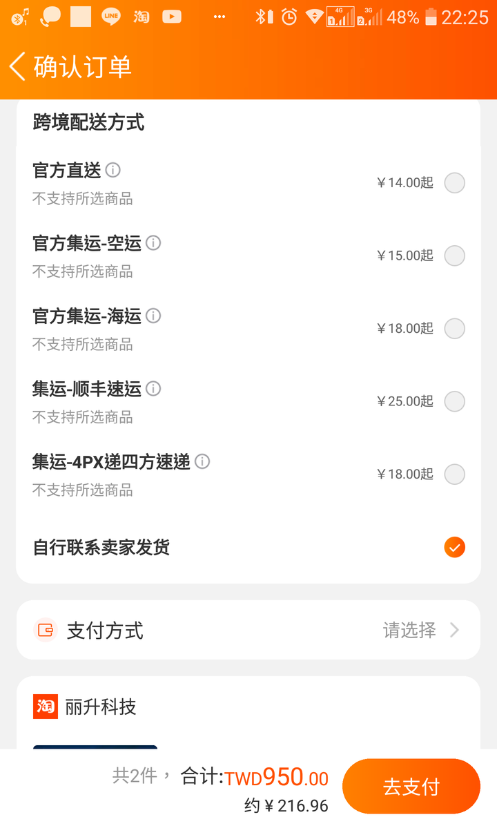 你再下單購買他集運商網站上貼出出售的運費,就跟在淘寶買東西一樣,可刷卡或超商付費