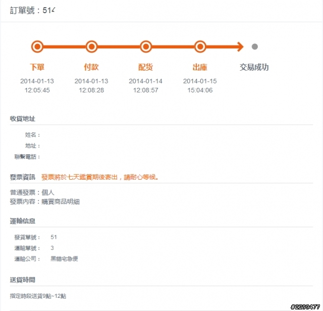 下單 2014-01-13 12:13:58付款 2014-01-13 12:50:25(PayPal)配貨 2014-01-14 16:03:07出庫 ................爬了一下文好像用PayPal的都比較慢