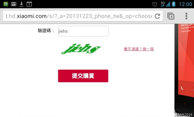 有出現驗證碼,20秒內輸入完(這麼慢是因為相信有出現驗證碼就表示有搶到,加上手機輸入較慢還高興的拍照留念)