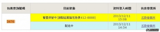 回報進度!2013-12-0914:30:04 Paypal 付款2013-12-1103:14:36 出庫剛剛 16:10 收到手機目前黑貓查詢編號 查無資料我在台北市大同區各位耐心稍等一下,應該快到了