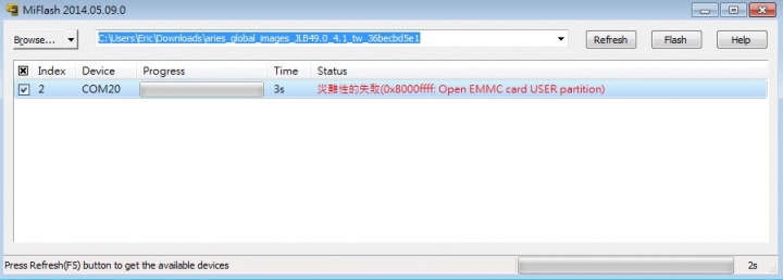 coolliung wrote: 謝謝您 果然F8那方法我沒仔細看,...(恕刪) 悲劇...你只好按關鍵字搜尋了,"open mmc card user partition"我也沒有經驗。換台32Bit的電腦,USB線直接插主機板再試試看。